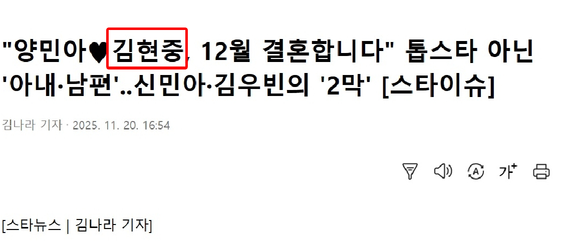 Mới đây, truyền thông Hàn đồng loạt đưa tin về việc "Kim Hyun Joong và Yang Min Ah kết hôn vào tháng Mười Hai này". Dòng tít trên đã khiến cho khán giả sôi sục với tin đồn Kim Hyun Joong (Vườn Sao Băng) sắp chuẩn bị làm đám cưới nữa? Vốn dĩ nam diễn viên này đã cưới vợ sinh con nên thông tin này ngay lập tức tạo ra nhiều luống ý kiến trái chiều cho trên mạng xã hội.