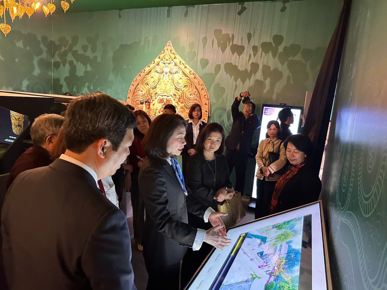 Bên cạnh đó, công nghệ VR360 mở ra chuyến du hành thực tế ảo, tái hiện không gian cung đình, các bảo vật và công trình kiến trúc thời Lý với độ phân giải cao. Người xem có thể đắm chìm hoàn toàn trong không gian 3D, quan sát chi tiết nghệ thuật điêu khắc và đời sống cung đình một cách chân thực.
