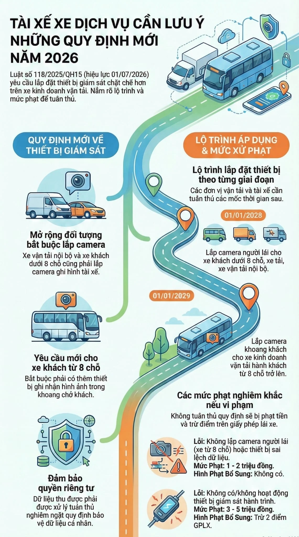 Luật số 118/2025/QH15 (luật số 118) sửa đổi, bổ sung một số nội dung về thiết bị giám sát hành trình và camera ghi hình đã tạo ra những quy chuẩn khắt khe hơn so với Luật Trật tự an toàn giao thông đường bộ 2024.