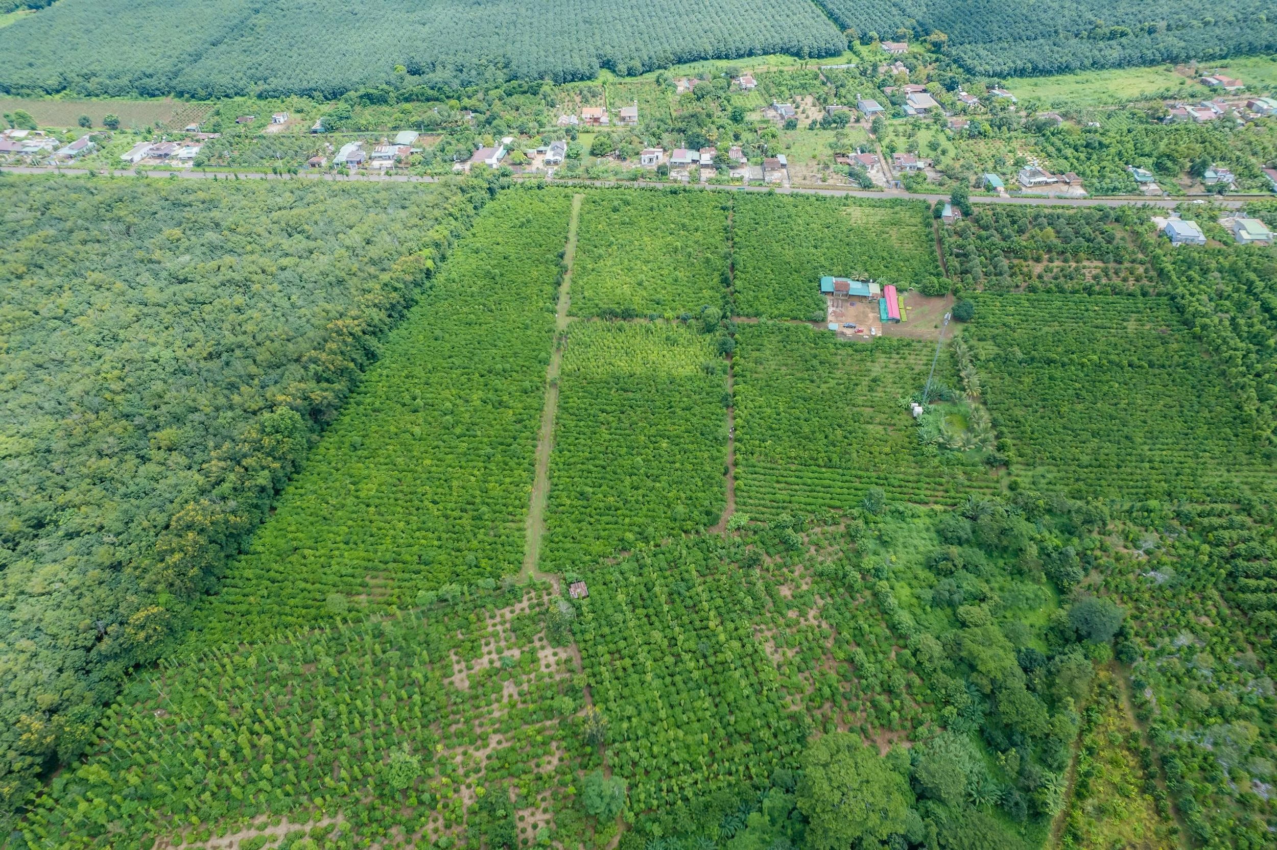 Vườn cà phê của ông Nguyễn An Sơn (thôn 7, xã Cư M’gar, tỉnh Đắk Lắk) nhìn từ trên cao. Ảnh: Djuang Niê