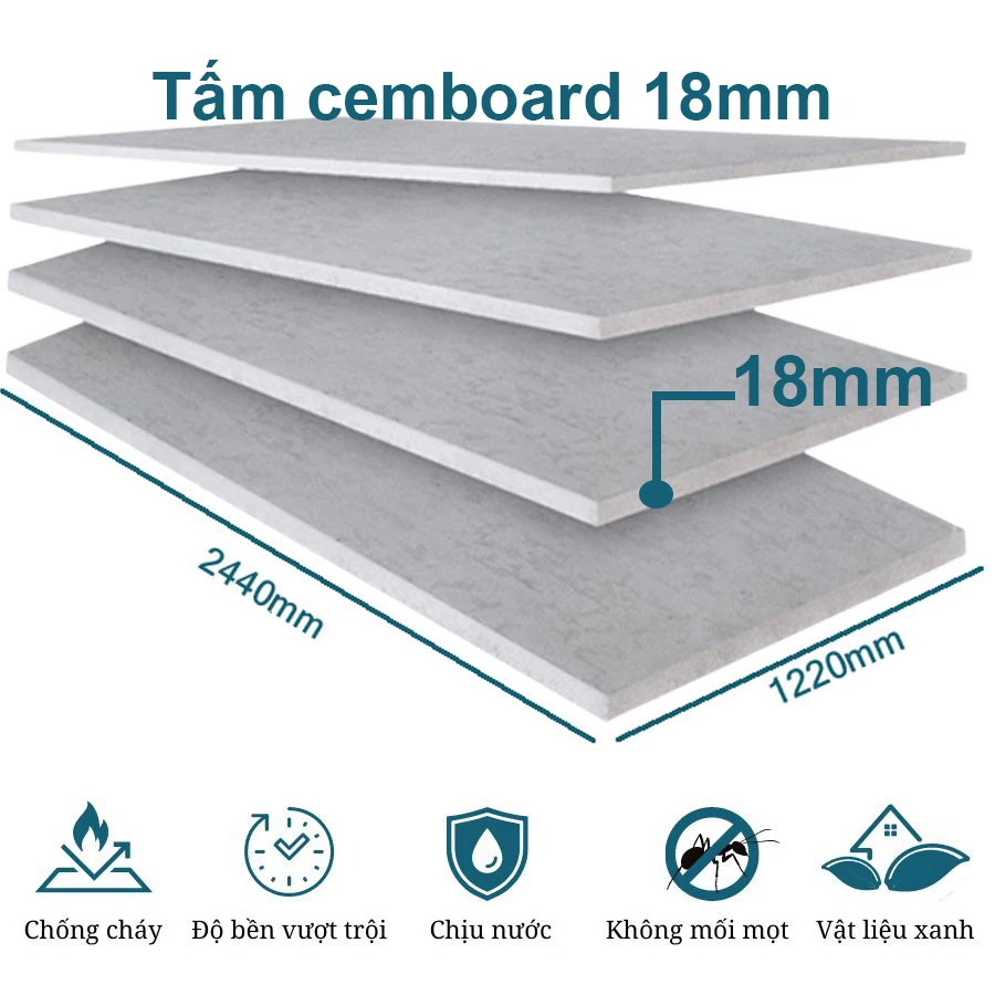 Đối với nhà vườn lắp ghép, độ dày tấm Cemboard làm sàn nên ưu tiên loại 18mm hoặc 20mm. Với độ dày này, sàn sẽ có độ đầm chắc, triệt tiêu tiếng rung và tiếng vang khi di chuyển – một yếu tố cực kỳ quan trọng để mang lại cảm giác thoải mái trong không gian nghỉ dưỡng.