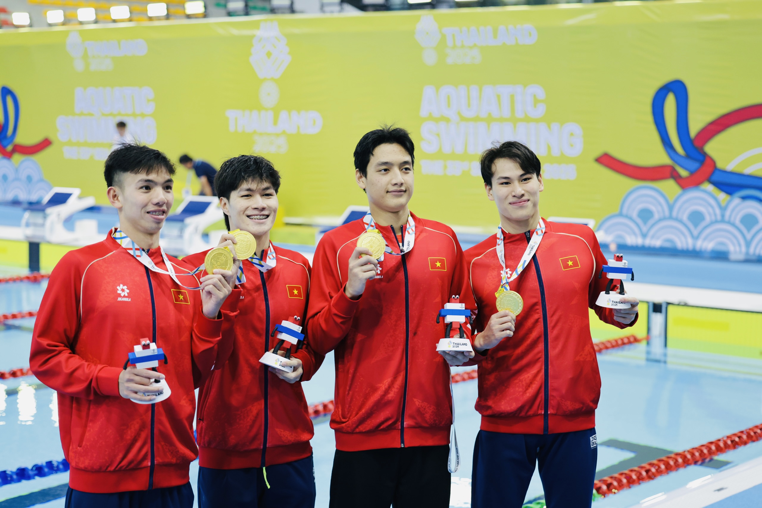 Như vậy, đội hình tiếp sức 4x200m tự do nam Việt Nam làm nên lịch sử khi 3 lần liên tiếp vô địch tại SEA Games. Chúng ta có tấm HCV đầu tiên tại SEA Games 32-2021 ở Việt Nam. Tại SEA Games 32-2023 ở Campuchia, các kình ngư tiếp tục giành HCV nội dung này. Ở SEA Games 33-2025 này, đội bơi Việt Nam đã chiến thắng tuyệt đối tiếp sức 4x200m tự do nam và bảo vệ vững chắc vị trí số 1 trong nội dung.