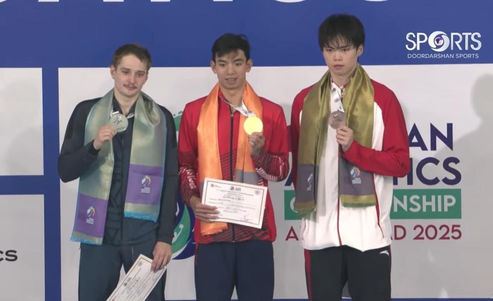 Huy Hoàng hoàn tất cúp đúp Huy chương vàng cá nhân tại giải vô địch Châu Á 2025. Ảnh TTVN