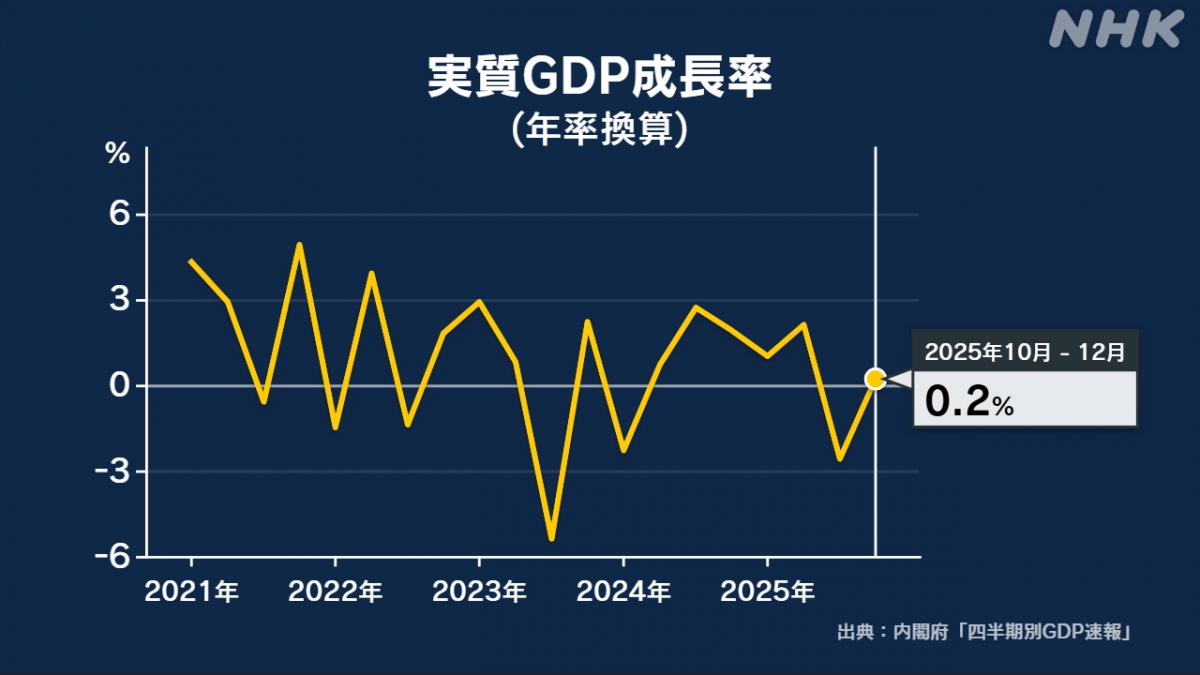 GDP của Nhật Bản tăng trưởng hàng năm ở mức 0,2% (Ảnh: NHK)