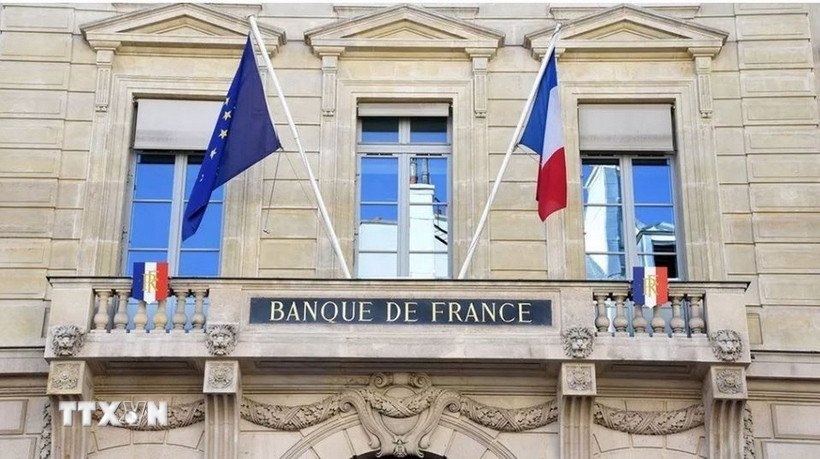 Bên ngoài trụ sở Ngân hàng Trung ương Pháp ở Paris. (Ảnh: SIPA/TTXVN)