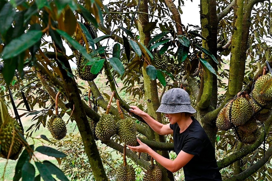 Du khách tham quan vườn sầu riêng tại xã La Dạ. Ảnh: Lê Trang