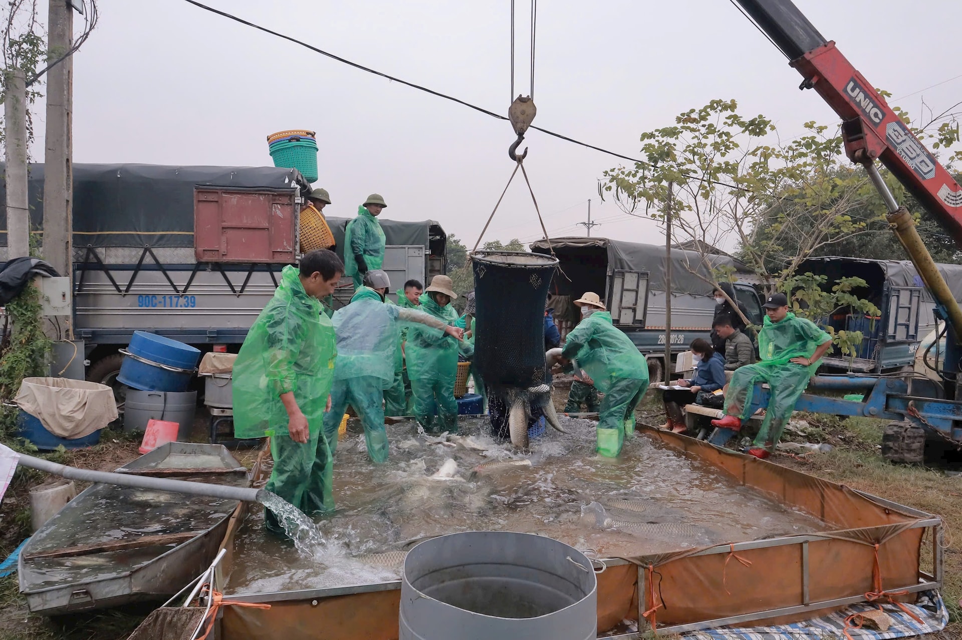 Thu hoạch cá tại một trang trại đa canh xã Vân Đình (Hà Nội). Ảnh: Nguyễn Mai