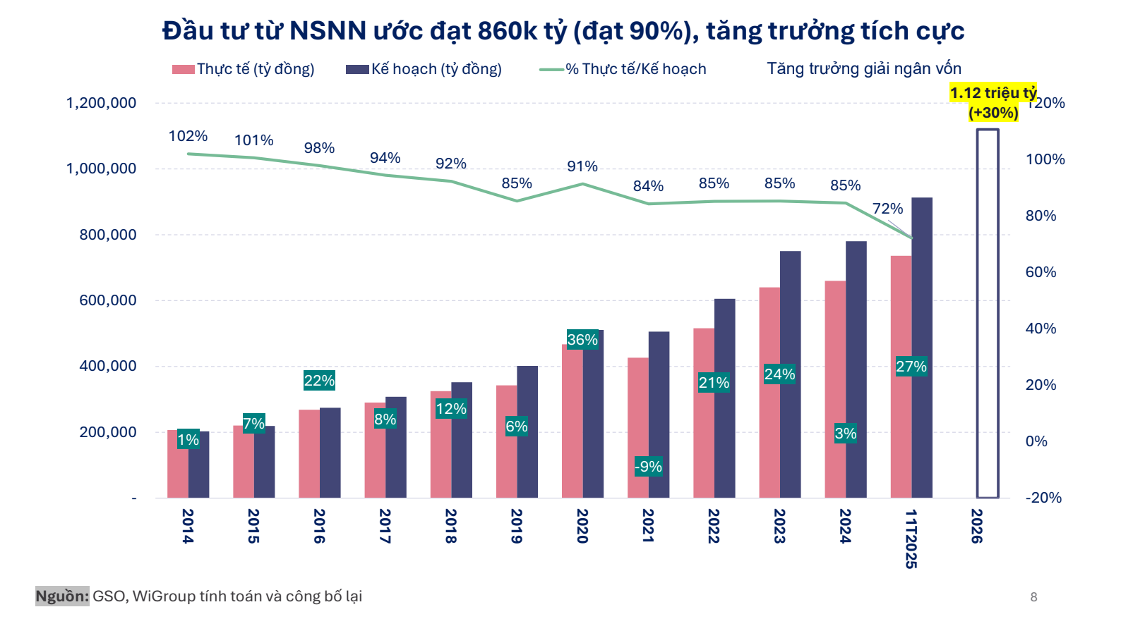 Đầu tư từ NSNN ước đạt 860.000 tỷ đồng (Nguồn: NSO, WiGroup)