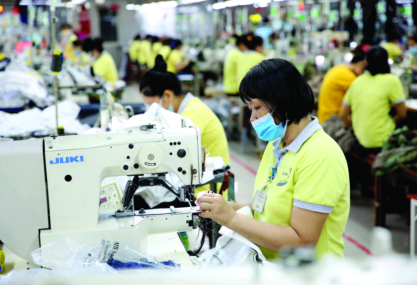 Sản xuất hàng xuất khẩu tại Công ty May mặc DONY, xã Vĩnh Lộc, TPHCM. Ảnh: Hoàng Hùng