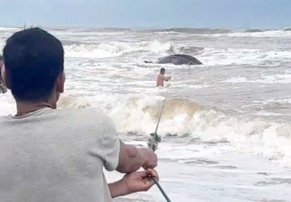 Do sóng lớn và nước xoáy, việc cứu nạn gặp nhiều khó khăn. Người dân đã sử dụng dây thừng nối dài để ứng cứu hai ngư dân đưa vào bờ an toàn. Sau đó người dân địa phương tiếp tục kéo được chiếc thuyền nan bị lật của ngư dân vào bờ, hạn chế thiệt hại tài sản.
