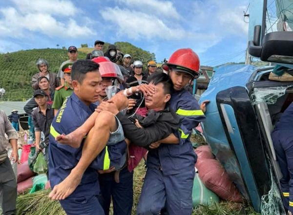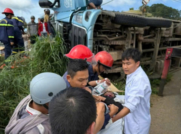 Nhận được tin báo, anh Phạm Văn Dợn (SN 1985) và Phan Minh Nghĩa (SN 1985, cùng ngụ phường Trà Vinh, tỉnh Vĩnh Long), đang bị mắc kẹt trong cabin xe tải chở cà phê bị lật, có nguy cơ đe dọa trực tiếp tới tính mạng, lãnh đạo Phòng Cảnh sát PCCC-CNCH Công an tỉnh Lâm Đồng đã chỉ đạo lực lượng tới hiện trường khẩn trương giải cứu các nạn nhân.