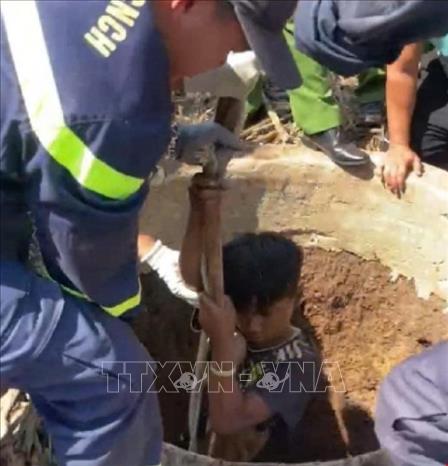Theo đó, sáng 17/3, Phòng Cảnh sát phòng cháy, chữa cháy và cứu nạn, cứu hộ nhận được tin báo của người dân về việc bé trai bị rơi xuống giếng tại buôn Săm A, xã Ea H'leo.