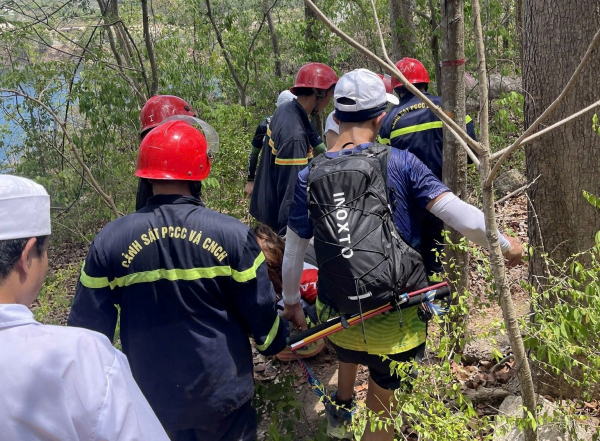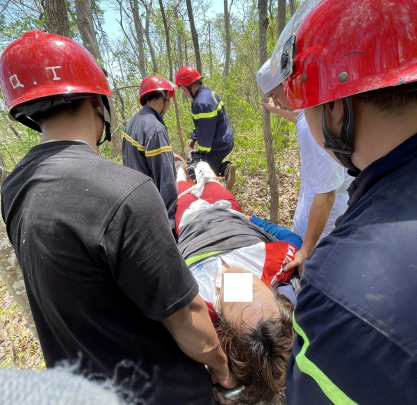 Tại hiện trường, lực lượng chức năng phát hiện một nữ du khách bị ngã dẫn đến gãy chân, không thể tự di chuyển, tinh thần khá hoảng loạn.