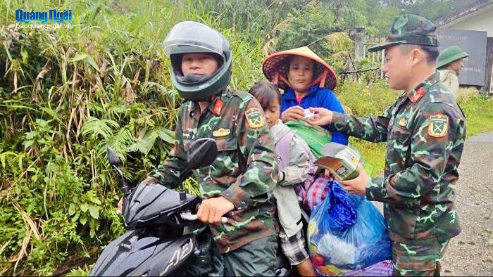Thượng tá Lê Hữu Duy, Chính ủy Ban Chỉ huy Phòng thủ khu vực 1 - Sơn Tịnh cho biết, ngay sau khi có lệnh, chúng tôi đã cơ động triển khai nhiệm vụ kịp thời, cùng địa phương huy động lực lượng đưa bà con đến 4 vị trí tập kết gồm: Trường mẫu giáo thôn, trạm y tế xã, Ban CHQS xã cũ và nhà một số hộ dân an toàn.
