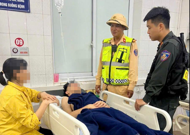 CSGT tỉnh Phú Thọ kịp thời đưa nam sinh bị sùi bọt mép, toàn thân co giật đi cấp cứu.