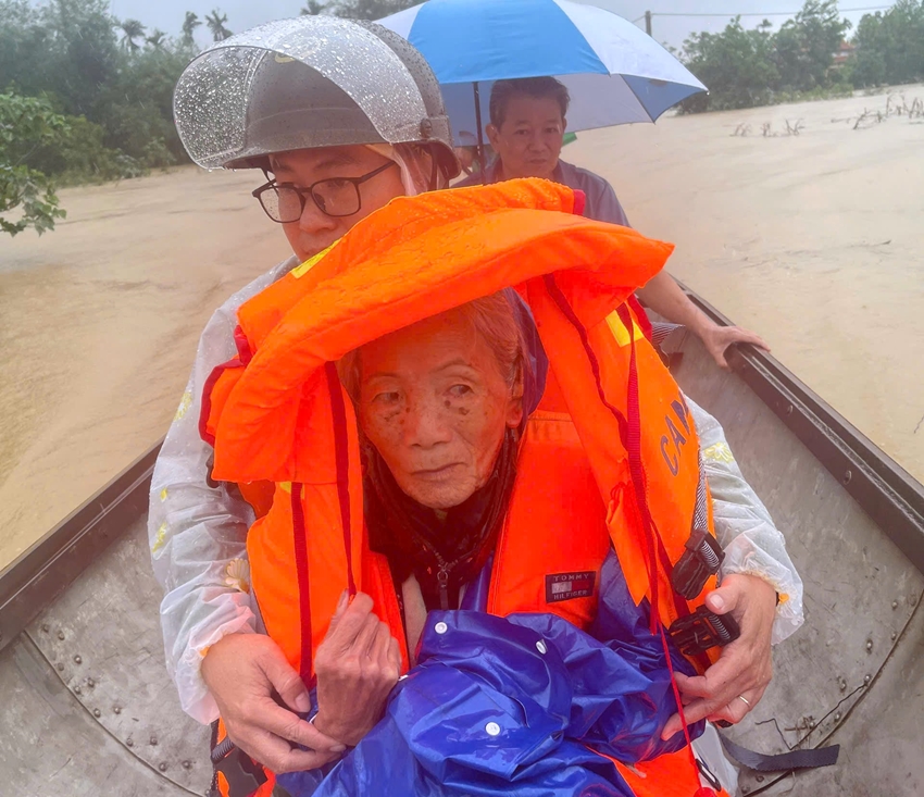 Tại phường Hương Trà, bà Hoàng Thị Noãn (85 tuổi, người già neo đơn ở tổ dân phố 3) do bị ngã trong nhà dẫn đến bị thương ở vùng đầu cũng đã được công an phường phân công cán bộ, chiến sĩ sử dụng xuồng máy đưa đi cấp cứu kịp thời.
