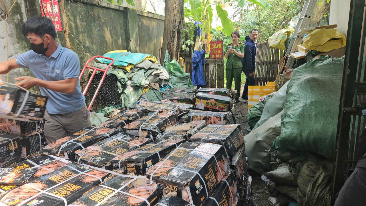 Số lượng hàng hóa không rõ nguồn gốc này có thể được dùng làm nguyên liệu chính cho món "lạp xưởng nướng đá" tiềm ẩn nguy cơ ảnh hưởng sức khỏe.