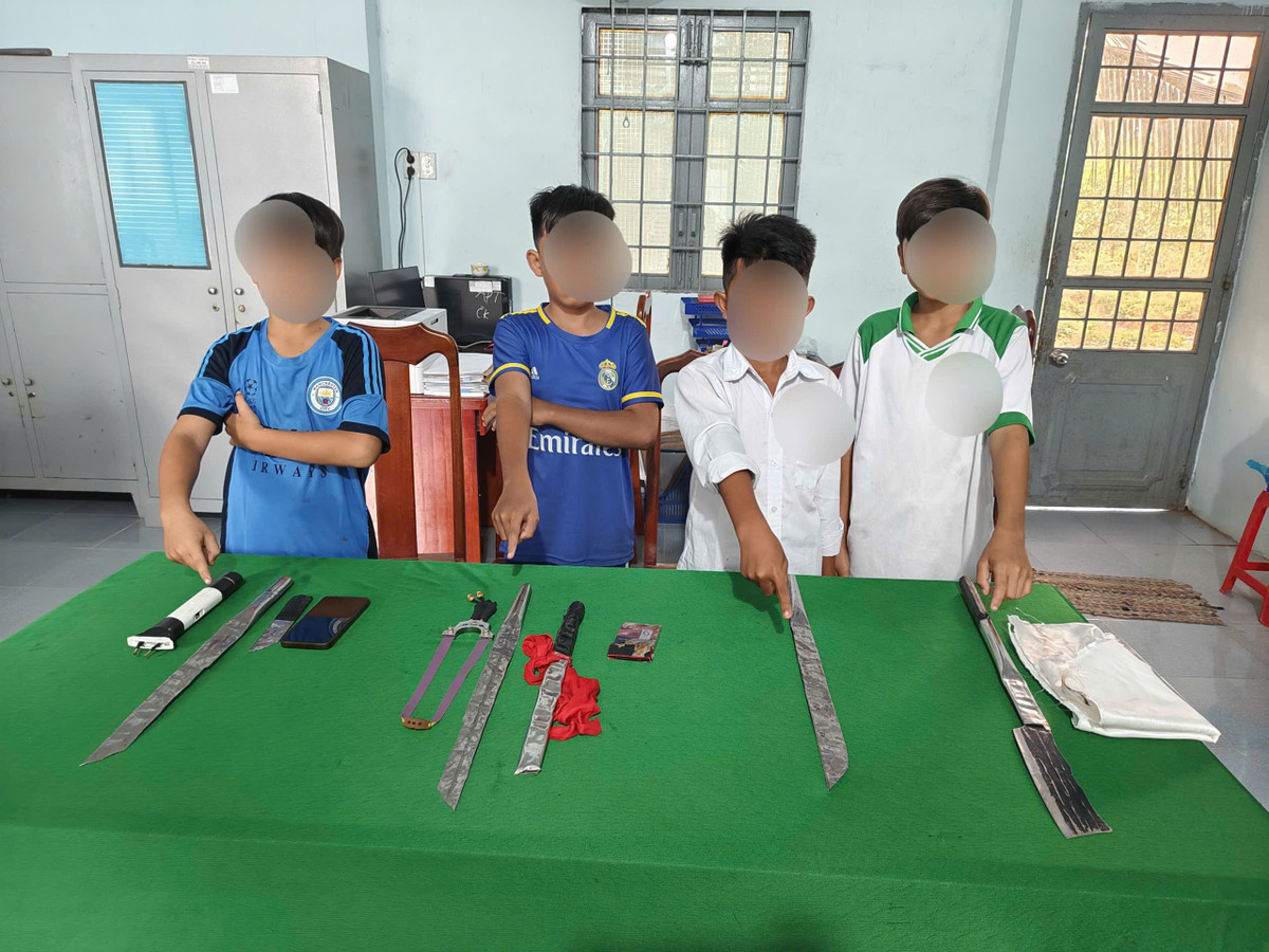 Trước đó, vào ngày 27/11, phía trước khu vực một trường Trung học cơ sở trên địa bàn xã An Phú Tân, lực lượng Công an phát hiện nhóm 04 học sinh lớp 6 có hành vi tụ tập, mang theo hung khí tự chế với mục đích đánh nhau nên đã mời về trụ sở làm việc.