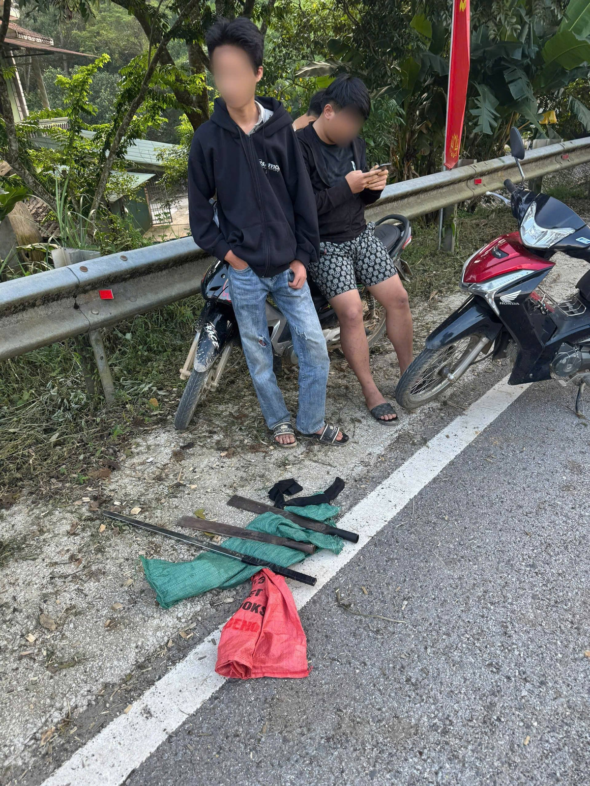 Nhận thấy đây là hành vi tiềm ẩn nguy cơ gây hậu quả nghiêm trọng, ảnh hưởng đến an ninh trật tự và an toàn xã hội, lực lượng Công an xã đã khẩn trương triển khai lực lượng đến hiện trường, kịp thời ngăn chặn vụ việc, thu giữ nhiều hung khí nguy hiểm và đưa các đối tượng liên quan về trụ sở làm việc.