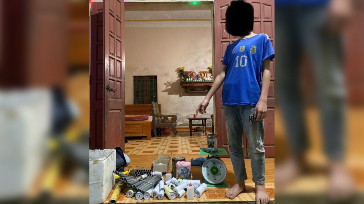 Quá trình làm việc, L.V.H tự nguyện giao nộp 3 quả pháo cuộn, 2 giàn pháo tự chế cùng nhiều nguyên liệu, dụng cụ phục vụ việc sản xuất pháo nổ với tổng khối lượng hơn 2kg. Tang vật thu giữ gồm bột than, bột lưu huỳnh, bột natri, giấy cuộn, keo dán và màng bọc thực phẩm.