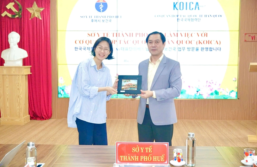 Lãnh đạo Sở Y tế TP. Huế tặng quà lưu niệm cho đại diện KOICA