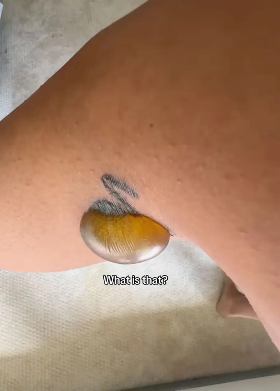 “Tôi nghĩ đó chỉ là những vết phồng nhẹ thôi", cô nói. Thế nhưng đến sáng hôm sau, tình trạng trở nên nghiêm trọng hơn. Một vết phồng rộp lớn xuất hiện phía sau đầu gối, chứa đầy chất lỏng màu nâu xanh. Trong video đăng tải, Green cho người xem thấy rõ vết thương và không giấu được sự hoang mang: “Đây là nó. Chuyện gì đang xảy ra vậy?”.