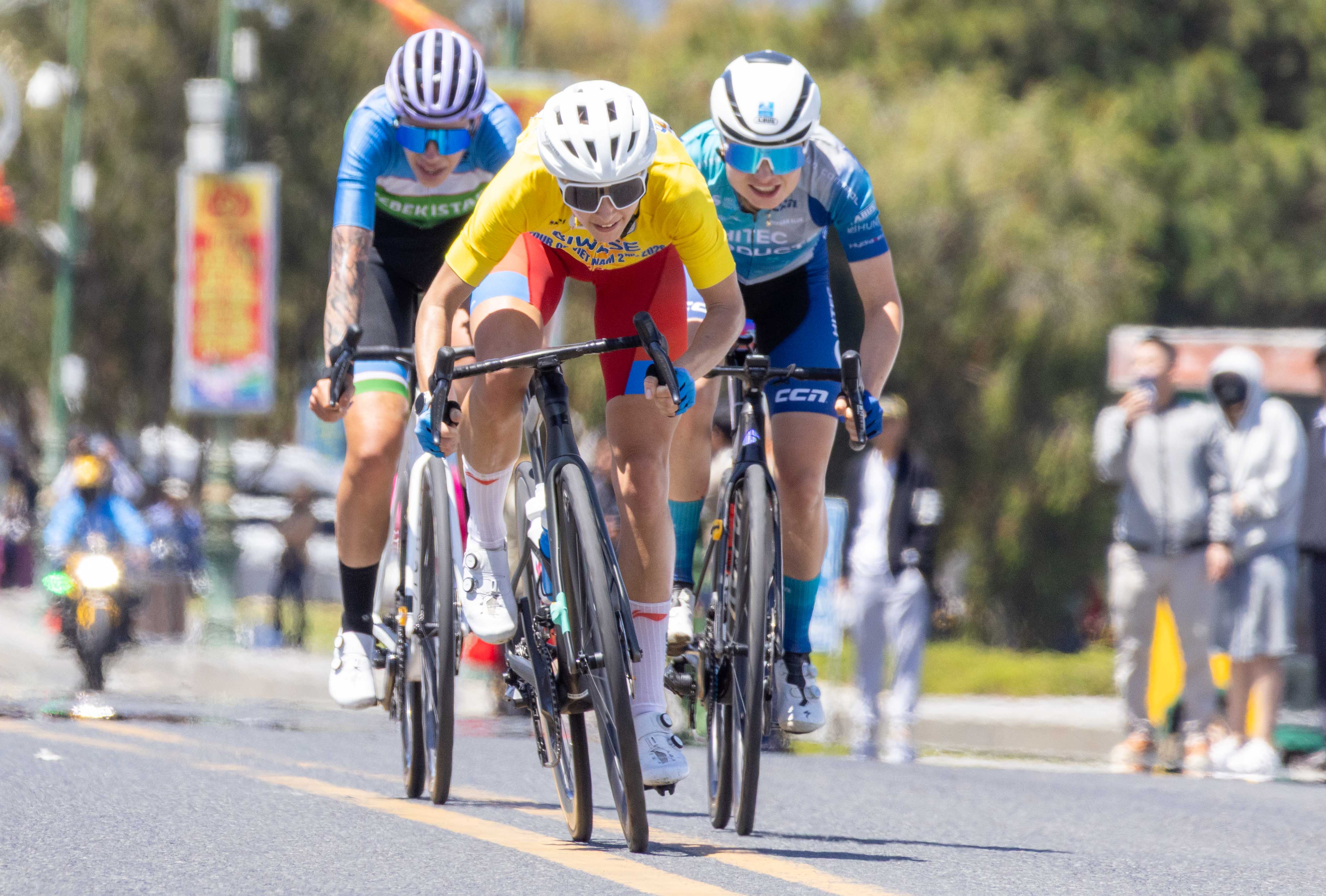 Tay đua Natalia Frolova (đội Biwase Bình Dương) đã chủ động bứt phá từ sớm nhằm tạo khoảng cách trước khi đoàn đua tiến vào những cung đường đèo dốc quyết định. Tuy nhiên, với phong độ ổn định và sự hỗ trợ bám đuổi hiệu quả từ các đồng đội ở đội đua Li Ning Star Ladies, Komina Marina đã bình tĩnh hóa giải mọi nỗ lực của đối thủ.