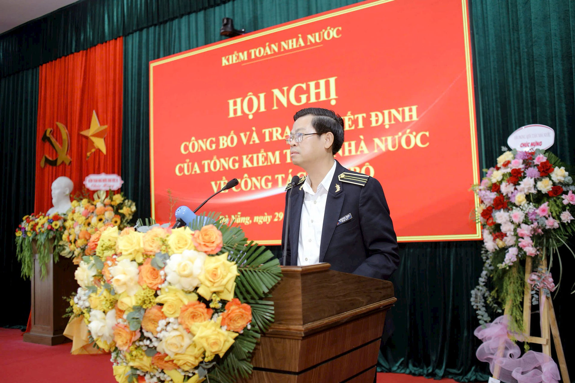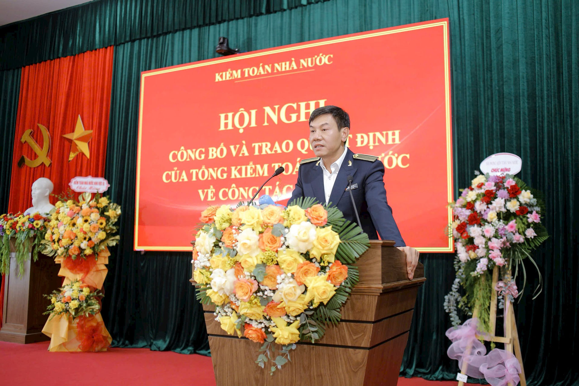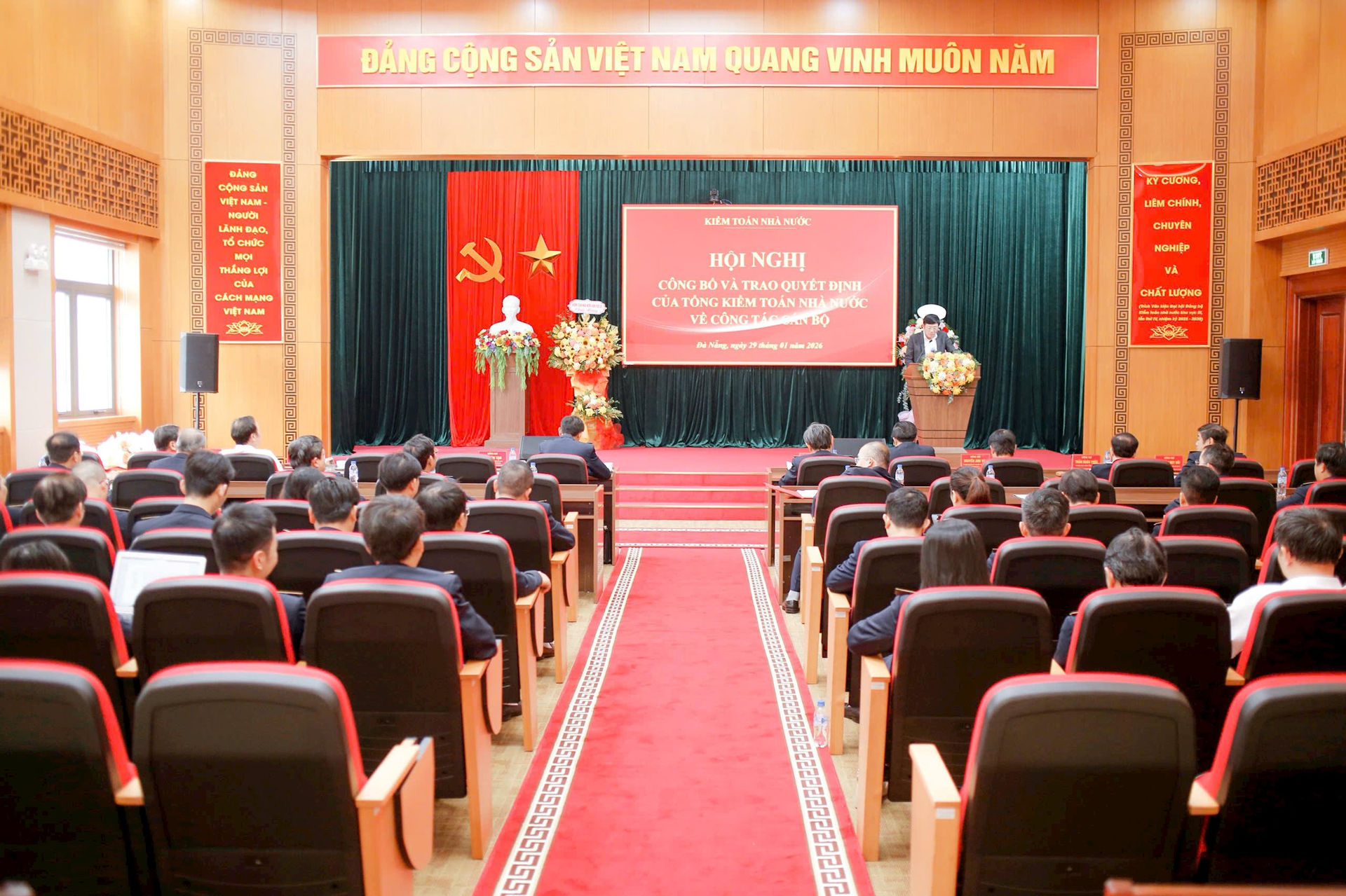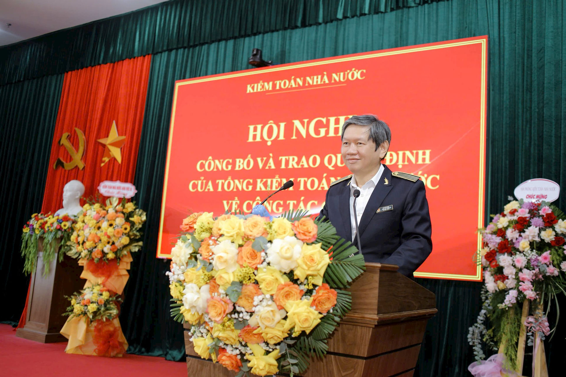 Thừa ủy quyền của Tổng Kiểm toán nhà nước, Phó Tổng Kiểm toán nhà nước Doãn Anh Thơ đã trao Quyết định và tặng hoa cho đồng chí Lê Quí Hưng và đồng chí Huỳnh Ngọc Quang.