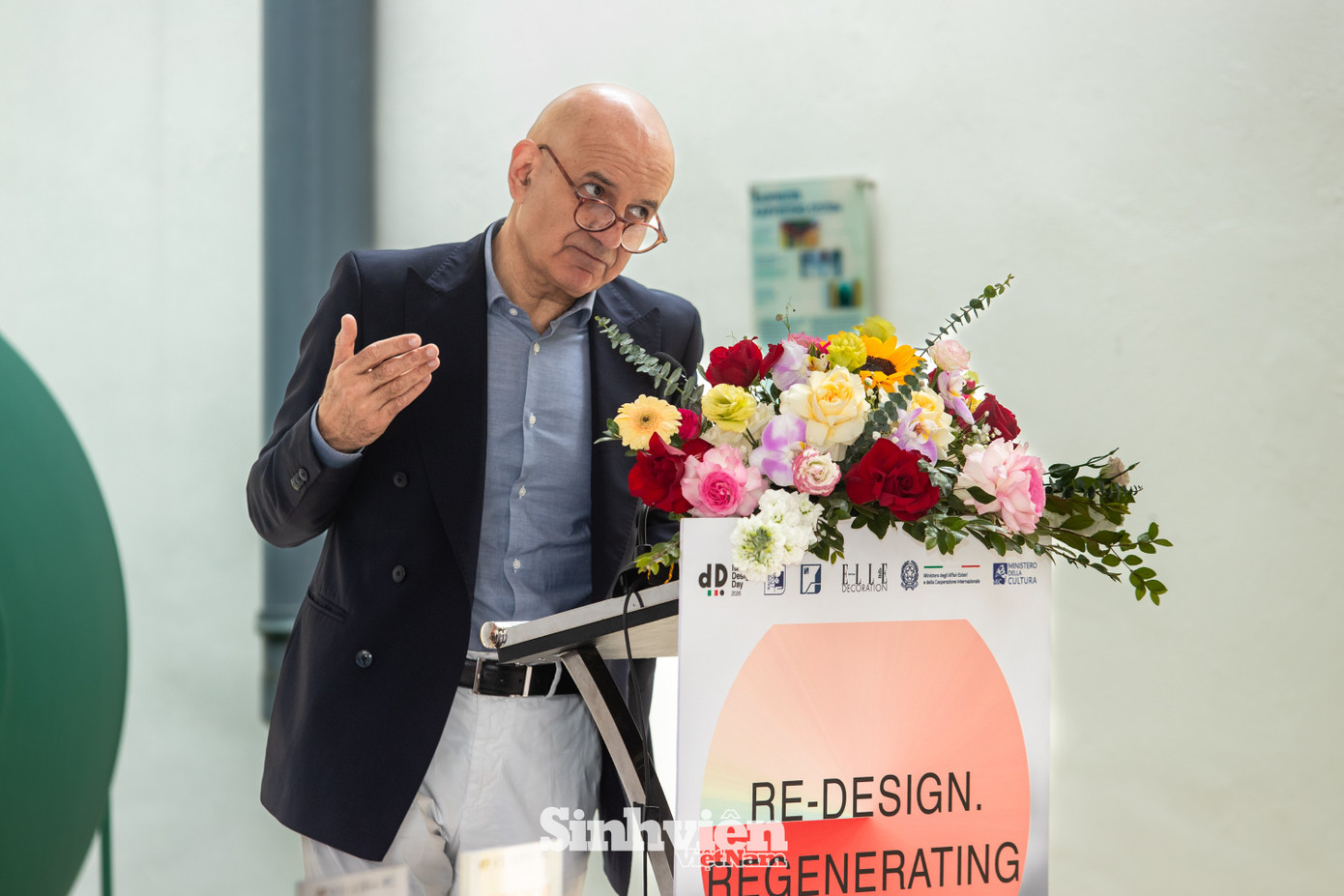 Ngài Marco Della Seta – Đại sứ Italia tại Hà Nội chia sẻ: "Ngày nay, thiết kế mang một ý nghĩa rộng hơn rất nhiều, bao gồm kiến trúc, quy hoạch đô thị, nguồn nhân lực và thậm chí cả thế giới kỹ thuật số. Chủ đề 'Tái thiết kế' mang lại cho chúng ta cơ hội suy nghĩ về những khái niệm then chốt nhằm giải quyết các thách thức của thời đại như kinh tế tuần hoàn và tái chế". Ngài Đại sứ nhấn mạnh, thiết kế ngày nay đã vượt ra khỏi ranh giới của việc tạo ra những vật dụng đẹp mắt. Thiết kế bao hàm kiến trúc, quy hoạch đô thị và cả việc giải quyết những thách thức của thời đại như kinh tế tuần hoàn.