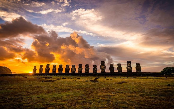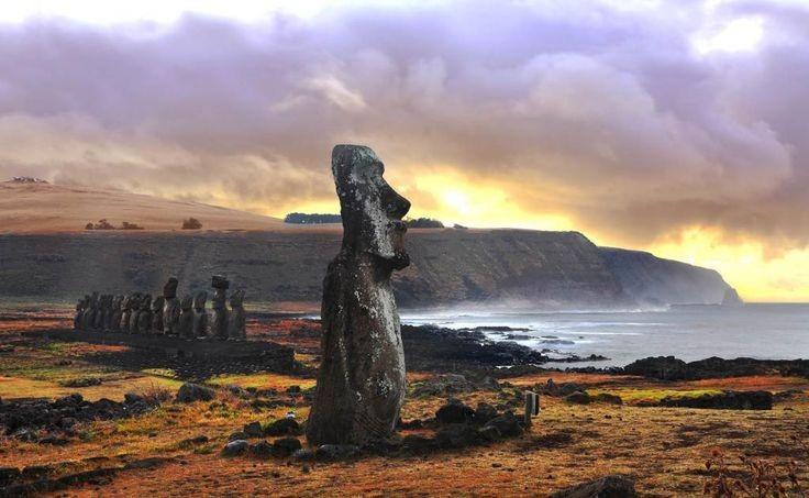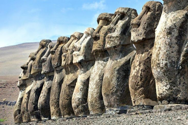 Là nơi có hơn 900 tượng moai. Các bức tượng cao trung bình 4 mét, nặng hàng chục tấn, được tạc từ đá núi lửa nguyên khối. Ảnh: Pinterest.