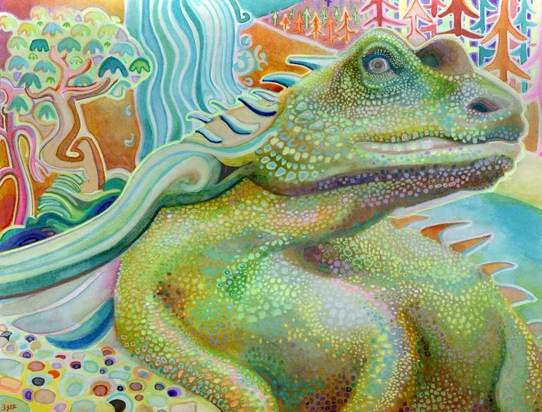 Truyền thuyết vẫn còn sống động. Đến nay, người Hawaii vẫn kể chuyện về Moʻo như một phần văn hóa truyền thống, truyền dạy sự tôn trọng thiên nhiên cho thế hệ trẻ. Ảnh: saatchiart.com.