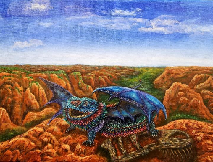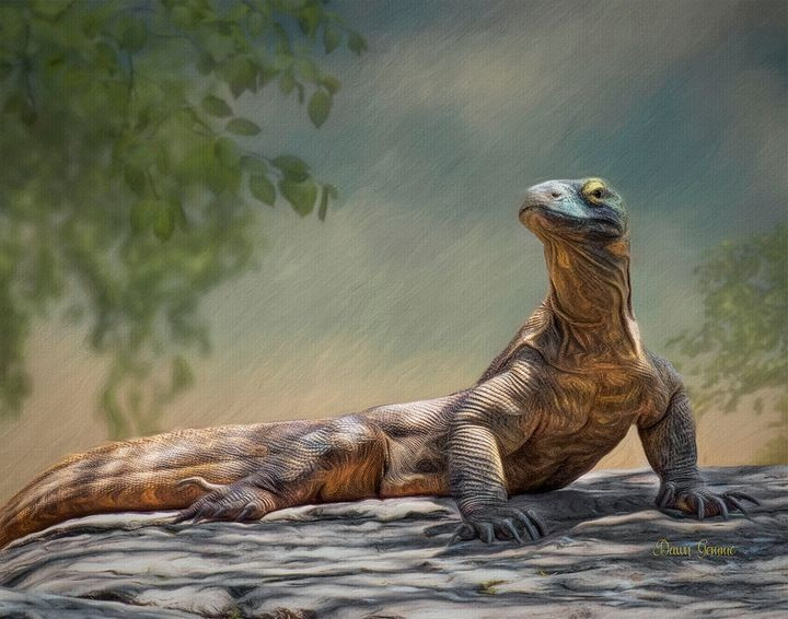 Thường xuất hiện dưới hình dạng thằn lằn khổng lồ. Các truyền thuyết miêu tả Moʻo như những con thằn lằn dài hàng chục mét, có vảy lấp lánh và đôi mắt sáng rực. Ảnh: artpal.com.
