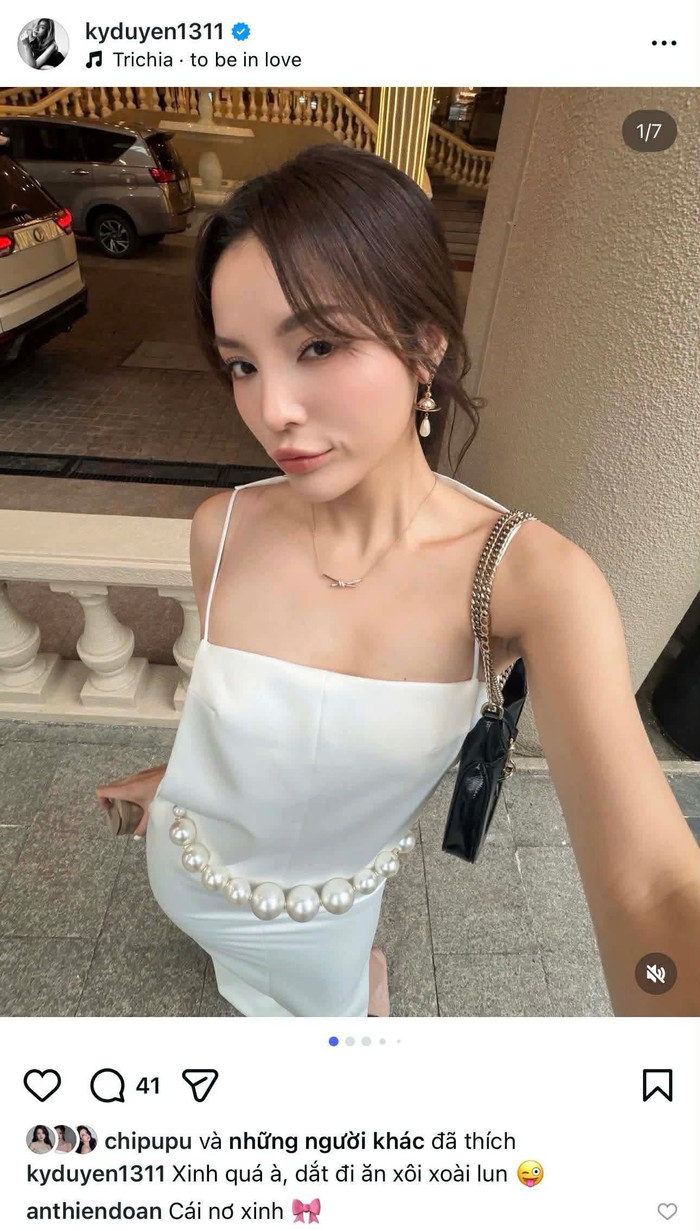Cụ thể, Kỳ Duyên chia sẻ loạt ảnh selfie khi cô diện một chiếc váy hai dây sắc trắng. Chỉ ít lâu sau khi hình ảnh được đăng tải, Thiên Ân đã nhanh chóng để lại bình luận, phản ứng đầy hóm hỉnh khiến người theo dõi không khỏi thích thú. Cô viết chỉ vỏn vẹn 3 từ: "Cái nơ xinh".