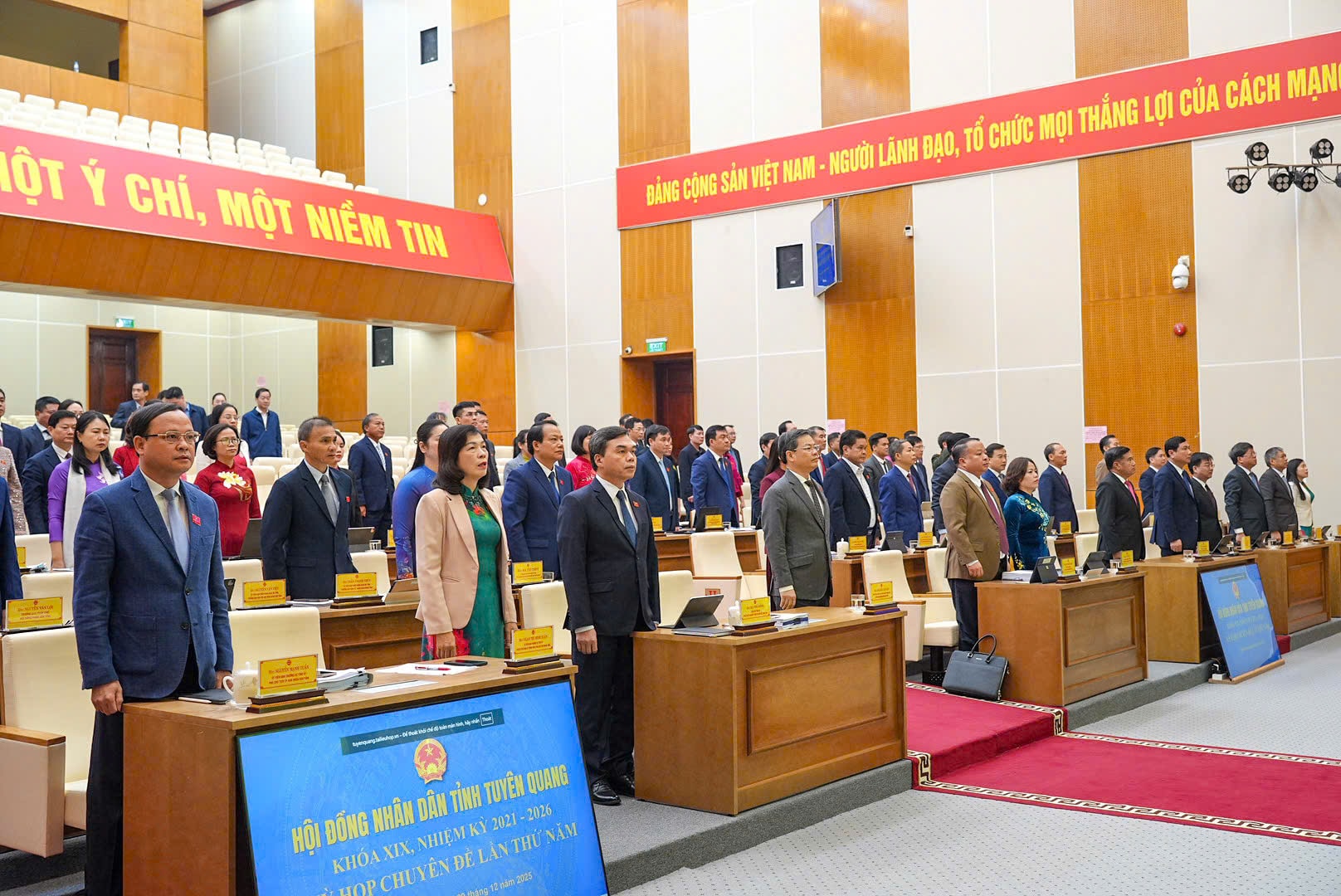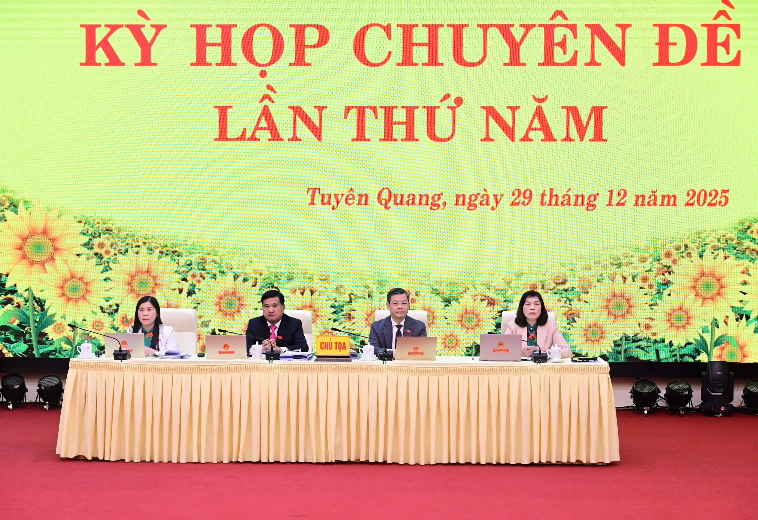 Tại kỳ họp, trên cơ sở xem xét kỹ lưỡng, HĐND tỉnh Tuyên Quang đã biểu quyết, thông qua các nghị quyết về: Việc kéo dài thời gian thực hiện và giải ngân kế hoạch vốn đầu tư công vốn ngân sách Trung ương năm 2025 đến hết ngày 31/12/2026, tỉnh Tuyên Quang; Quy định tiêu chí xác định vị trí đối với từng loại đất, số lượng vị trí đất trong bảng giá đất và quyết định bảng giá đất trên địa bàn tỉnh Tuyên Quang; Quy định mức chi cụ thể cho các hoạt động khuyến công địa phương trên địa bàn tỉnh Tuyên Quang; Quy định mức hỗ trợ đóng bảo hiểm y tế cho một số đối tượng trên địa bàn tỉnh Tuyên Quang.