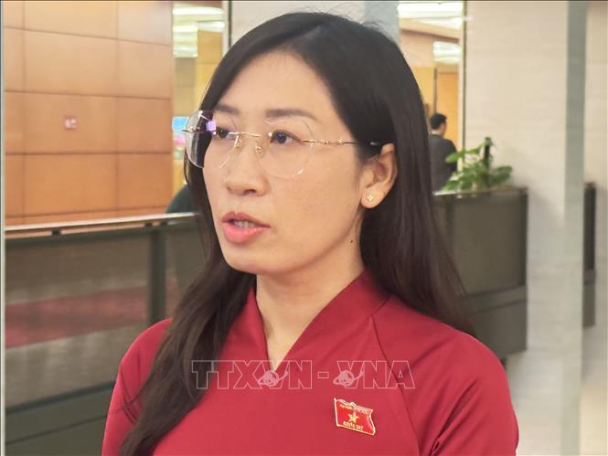 Đại biểu Hoàng Thị Thanh Thúy (Đoàn Tây Ninh) trả lời phỏng vấn. Ảnh: Hải Ngọc/TTXVN