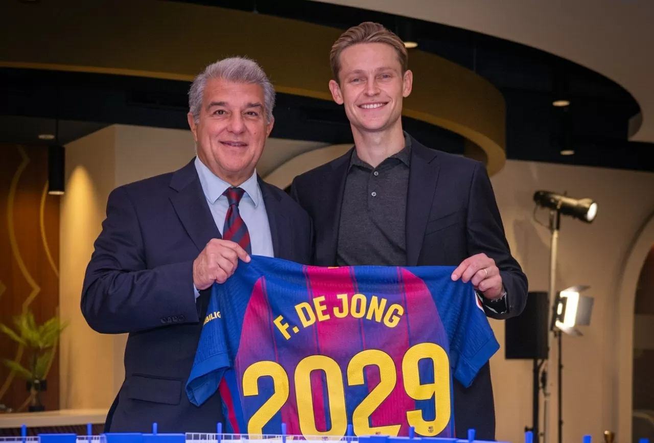 Nếu hoàn tất hợp đồng vừa ký, De Jong sẽ gắn bó với Barcelona tổng cộng 9 năm. Trước đó, anh gia nhập đội chủ sân Camp Nou vào mùa Hè 2019 từ Ajax với mức phí 75 triệu Euro, sau khi từ chối các đề nghị từ PSG, MU và Man City.