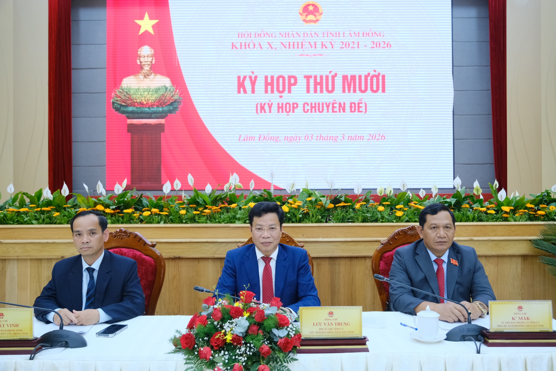 Đồng chí Lưu Văn Trung, Phó Bí thư Tỉnh ủy, Chủ tịch HĐND tỉnh; cùng các đồng chí K’ Mák, Đa Cát Vinh, Phó Chủ tịch HĐND tỉnh Lâm Đồng chủ trì kỳ họp tại điểm cầu Đà Lạt. Kỳ họp được tổ chức trực tiếp kết hợp trực tuyến tại 3 điểm cầu khu vực Đà Lạt, Gia Nghĩa và Phan Thiết.