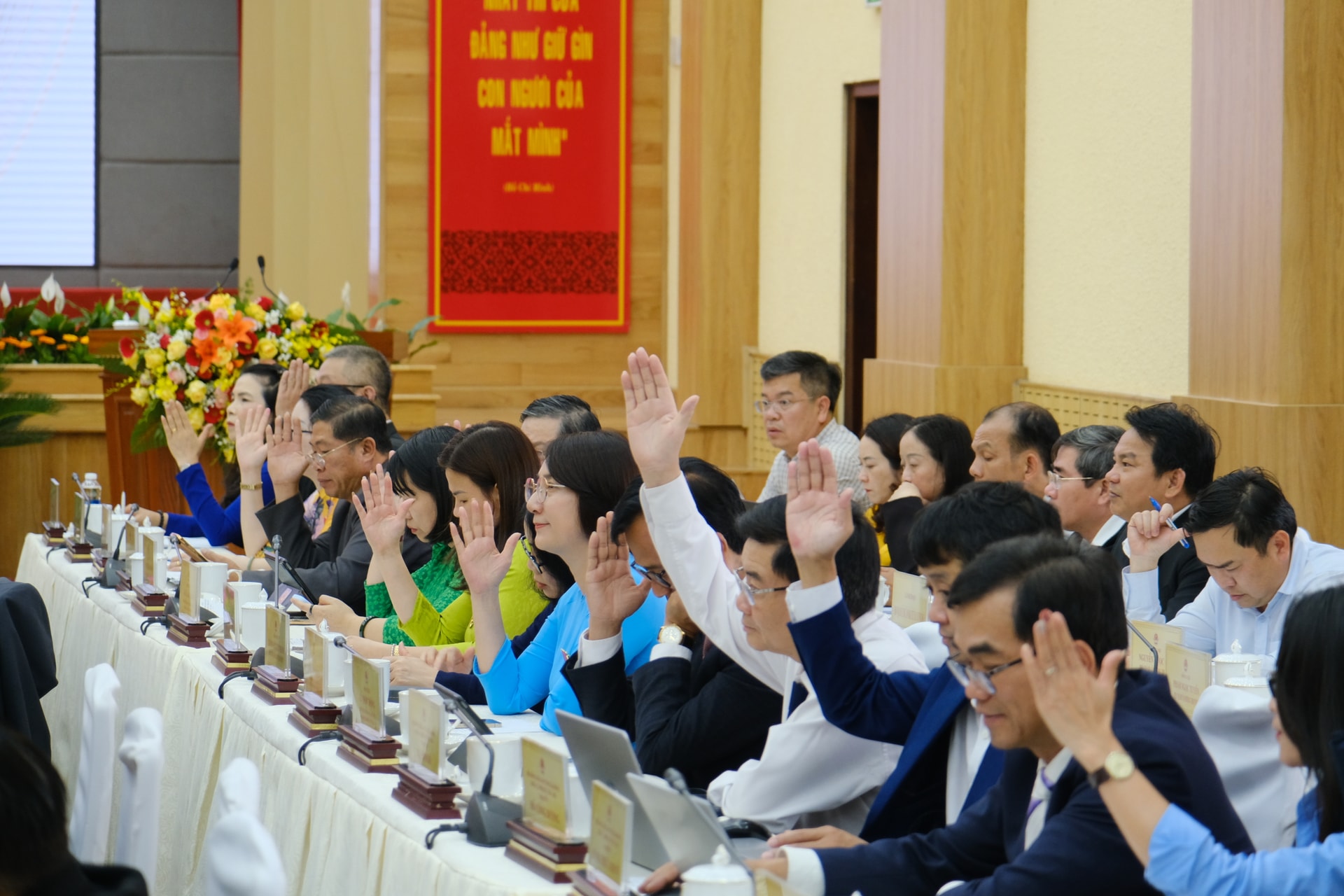 Các đại biểu tham gia biểu quyết thông qua các nghị quyết