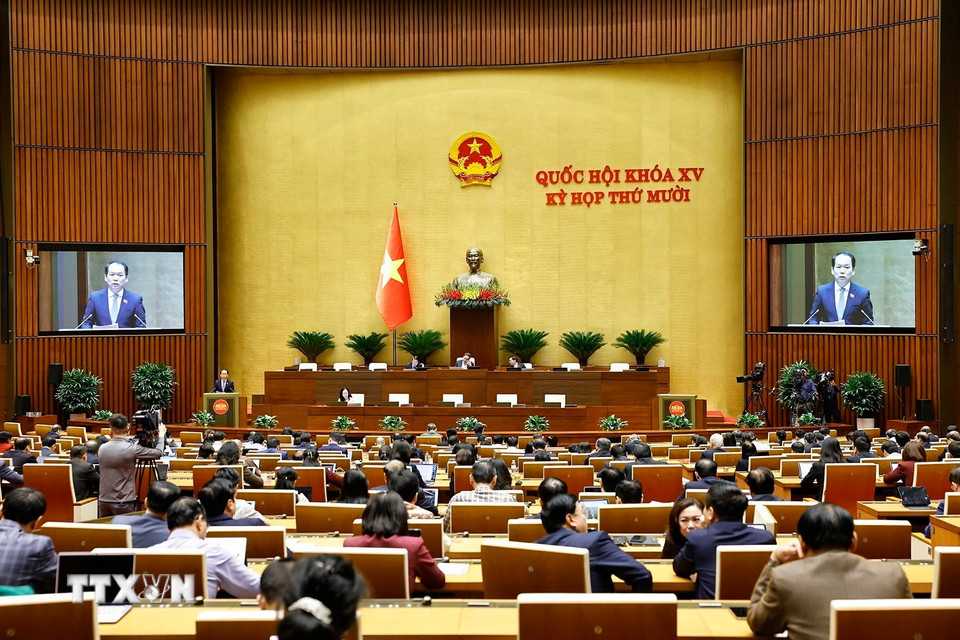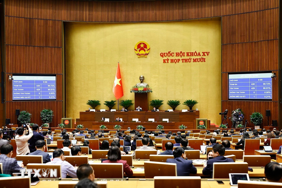 Quốc hội biểu quyết thông qua Luật Tương trợ tư pháp về hình sự. (Ảnh: Doãn Tấn/TTXVN)