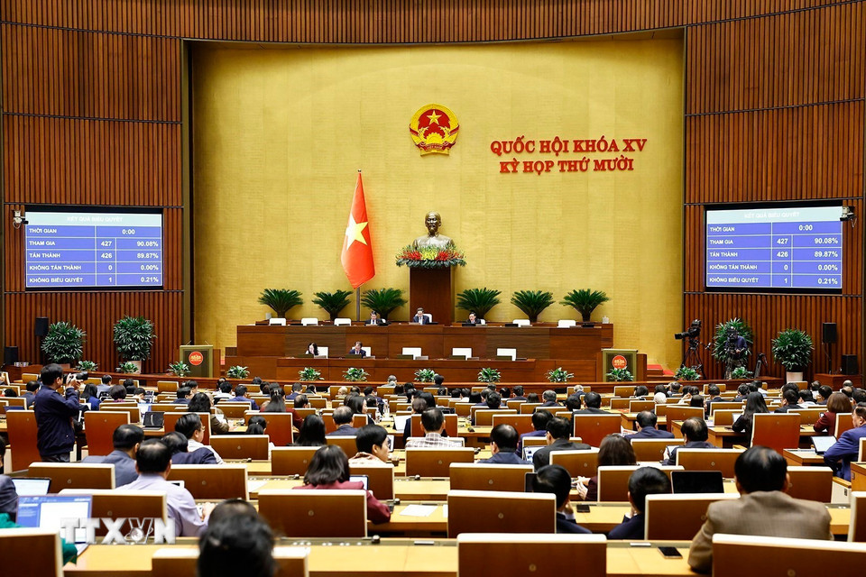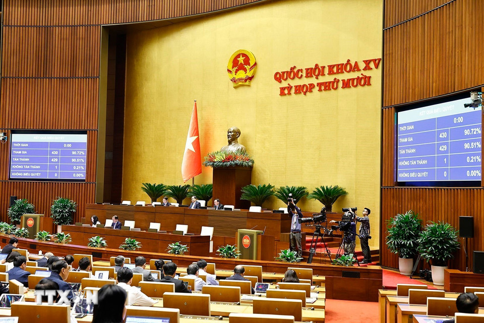 Quốc hội biểu quyết thông qua Luật Chuyển giao người đang chấp hành án phạt tù. (Ảnh: Doãn Tấn/TTXVN)