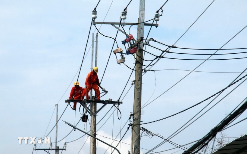 Nâng cấp, sửa chữa lưới điện ở An Giang. (Ảnh: Lê Huy Hải/TTXVN)