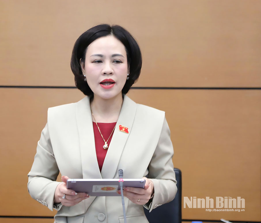 Đại biểu Trần Thị Hồng Thanh, Phó Trưởng Đoàn ĐBQH tỉnh Ninh Bình tham gia thảo luận tại Tổ.
