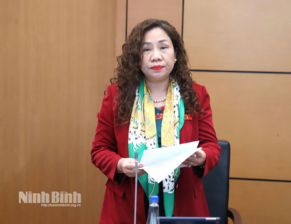 Đại biểu Khương Thị Mai, Giám đốc điều hành Công ty TNHH nhôm Nam Sung (Đoàn ĐBQH tỉnh Ninh Bình) tham gia thảo luận tại Tổ.