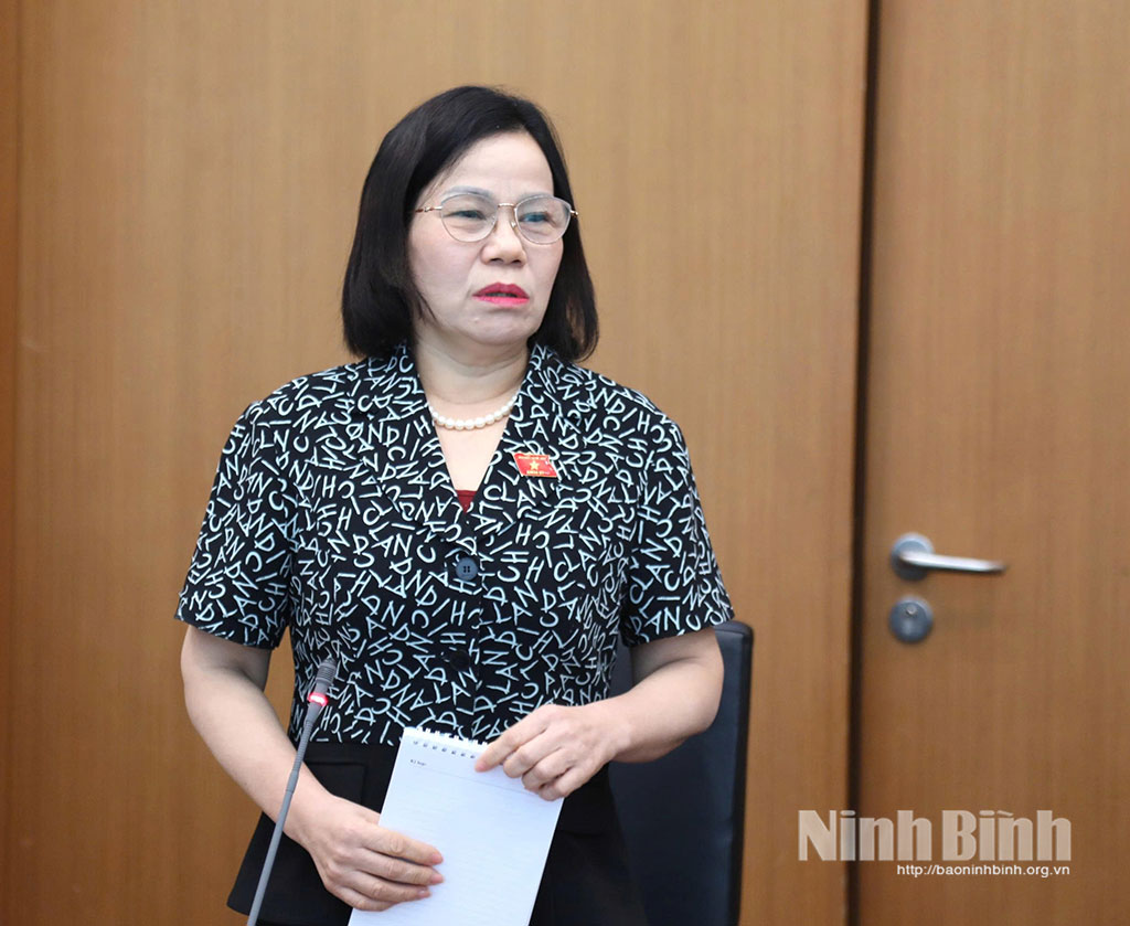 Đại biểu Trần Thị Hiền, Chủ tịch HĐQT, Giám đốc Công ty Cổ phần Xây dựng và Phát triển Hạ tầng Kỹ thuật Hà Nam (Đoàn ĐBQH tỉnh Ninh Bình) tham gia thảo luận tại Tổ.