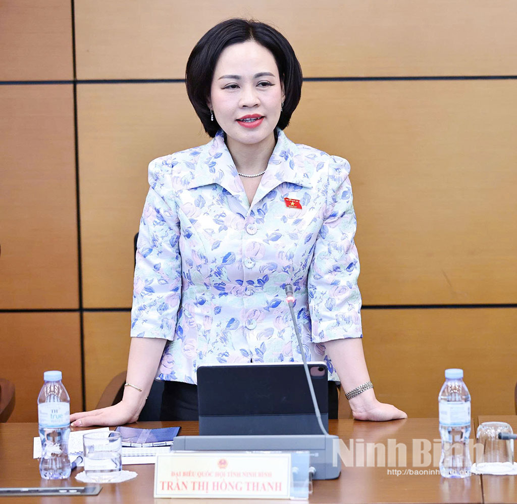 Đại biểu Trần Thị Hồng Thanh, Phó Trưởng Đoàn ĐBQH tỉnh phát biểu thảo luận tại Tổ.