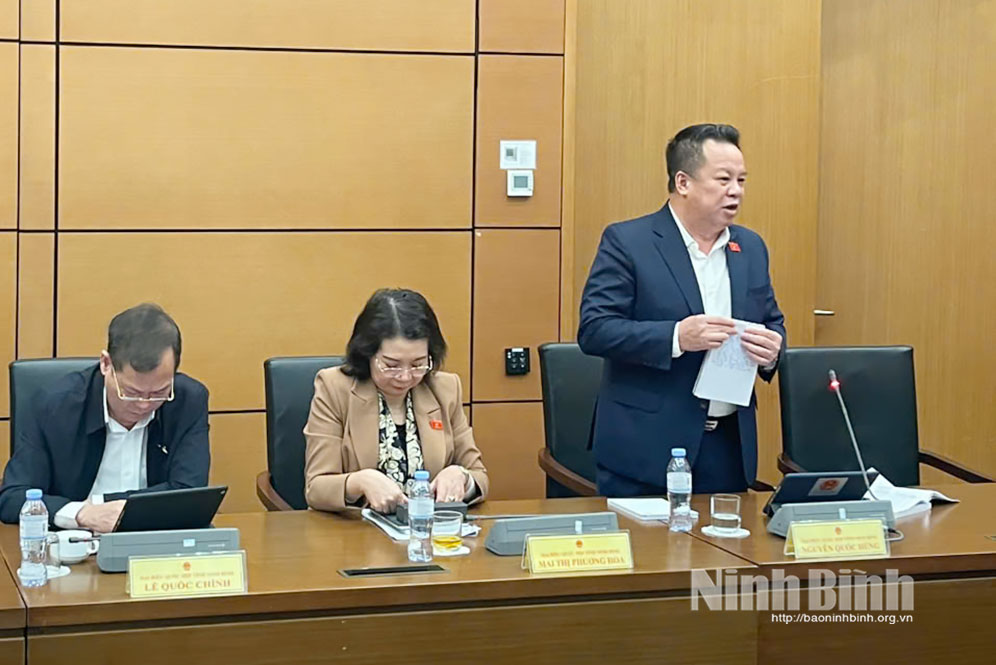Tham gia thảo luận ở Tổ, về phía Đoàn ĐBQH tỉnh Ninh Bình có các đồng chí: Nguyễn Thị Thanh, Ủy viên Trung ương Đảng, Phó Chủ tịch Quốc hội; Đặng Xuân Phong, Ủy viên Trung ương Đảng, Bí thư Tỉnh ủy, Trưởng Đoàn ĐBQH tỉnh; Lê Thị Nga, Ủy viên Trung ương Đảng, Ủy viên Ủy ban Thường vụ Quốc hội, Phó Chủ nhiệm Thường trực Ủy ban Dân nguyện và Giám sát của Quốc hội; Lê Quốc Chỉnh, Phó Bí thư Tỉnh ủy, Chủ tịch HĐND tỉnh; các đồng chí lãnh đạo Đoàn ĐBQH và các vị đại biểu Quốc hội tỉnh. Đồng chí Đặng Xuân Phong, Ủy viên Trung ương Đảng, Bí thư Tỉnh ủy, Trưởng Đoàn ĐBQH tỉnh Ninh Bình chủ trì thảo luận Tổ.