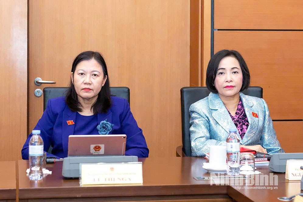 Đồng chí Phó Chủ tịch Quốc hội Nguyễn Thị Thanh và đồng chí Phó Chủ nhiệm Thường trực Ủy ban Dân nguyện và Giám sát của Quốc hội Lê Thị Nga (Đoàn ĐBQH tỉnh Ninh Bình) tham dự thảo luận Tổ.