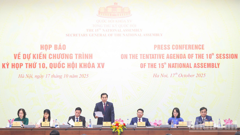 Chiều 17/10, tại Nhà Quốc hội, Ủy viên Trung ương Đảng, Phó Chủ nhiệm Thường trực Văn phòng Quốc hội Lê Quang Mạnh chủ trì buổi họp báo thông tin về dự kiến chương trình, nội dung Kỳ họp thứ 10 Quốc hội khóa XV.