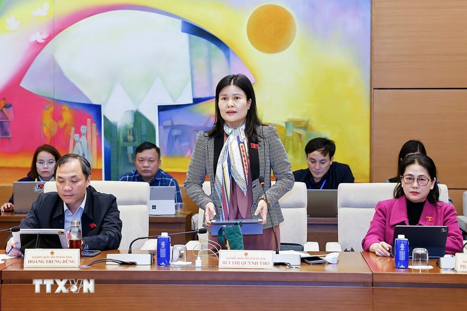 Đại biểu Quốc hội tỉnh Hà Tĩnh Bùi Thị Quỳnh Thơ phát biểu. (Ảnh: Doãn Tấn/TTXVN)