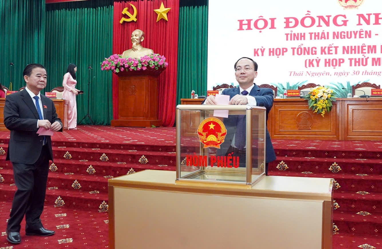 Các đại biểu bỏ phiếu thực hiện quy trình công tác cán bộ thuộc thẩm quyền tại kỳ họp.